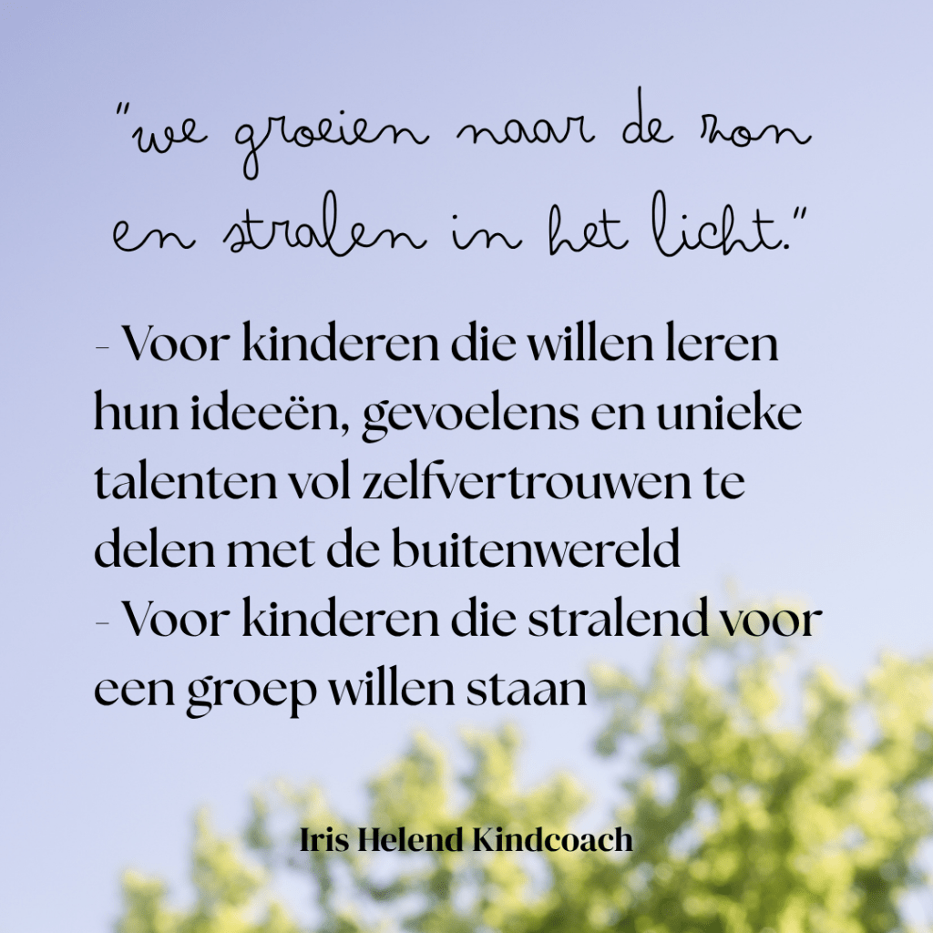 Om groei te vieren bied ik drie groeitrajecten aan: de Kids Grow Journeys. Geïnspireerd op de natuur, want alles en iedereen groeit op zijn eigen manier, tijd en ritme. In de Kids Grow Journeys gaan kinderen op ontdekkingsreis naar zelfinzicht, veerkracht en zelfvertrouwen.